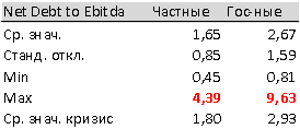 государственных компаний уровень NetDebttoEBITDAзначительновыше, чем у частных