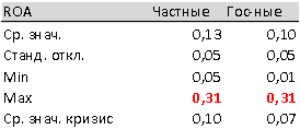 два раза превышает стандартное отклонение показателя по частным компаниям.