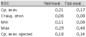 Что касается показателей рентабельности, то по всем тестируемым коэффициентам рентабельности частные компании показали лучший результат при меньшем уровне волатильности как за весь период, так и в период кризиса.