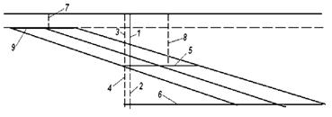 бремсберг; 5 - конвейерный бремсберг