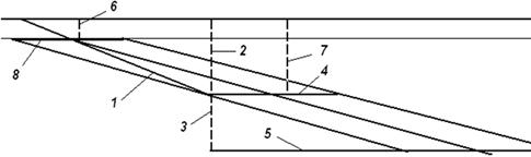 полевой транспортный штрек; 3 - воздухоподающий штрек; 4 - вентиляционный