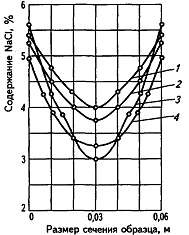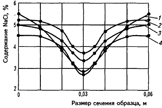 Кривые накопления поваренной соли при посоле свинины