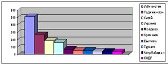Рисунок 4 - Численность иностранных трудовых мигрантов, работавших в России в 2012 г, по странам происхождения, тыс. человек [25, c. 87]