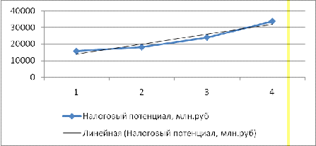 Исходя из данных таблицы 7, построим график изменения налогового потенциала по годам и проведем линию тренда (Рисунок 8).