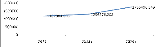 и пассивов в 2014 г. возросла на 47,771 % по сравнению с 2012 г. и на 35,426 %