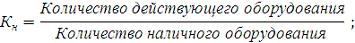 При анализе определяют коэффициент загрузки установленного оборудования равный: отношению фактически работающее оборудование к установленному оборудованию и коэффициент использования наличного оборудования равный отношению фактически работающее оборудование к наличному оборудованию.