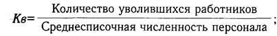 коэффициент оборота по выбытию (Кв):
