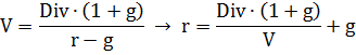 - стоимость собственного капитала; D - дивиденд по акции; Р -