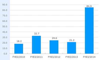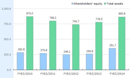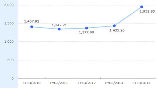 Собственный капитал на одну акцию заметно увеличился к 2014 году.