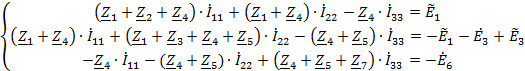 На основании законов Кирхгофа составим систему независимых алгебраических