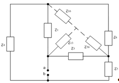 эквивалентной звездой, где сопротивление плеча равно Рис. 11. Преобразованная схема