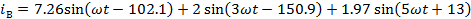 при учете гармоник 1, 3, 5 вычисляется по формуле: