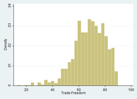 значения от 0 до 90 (при этом «0» обозначает низкий уровень свободы торговли, а