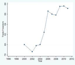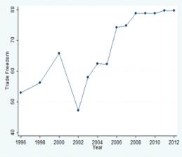 показателя свободы торговли за весь указанный период времени. Что касается