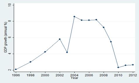 Как видно, темпы роста ВВП в данном государстве стабильно повышались до