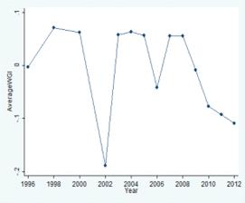 среднего уровня качества институтов, видно их постепенное (с колебаниями)