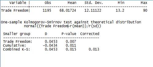 допущением о квадратичности влияния переменной свободы торговли: