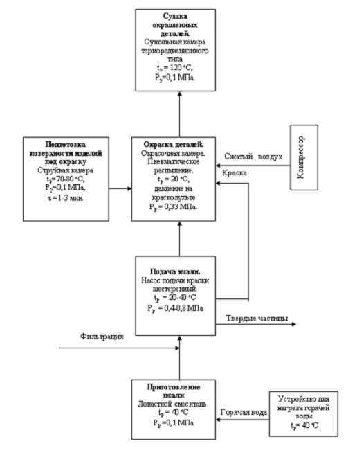 Описание технологического процесса окраски деталей