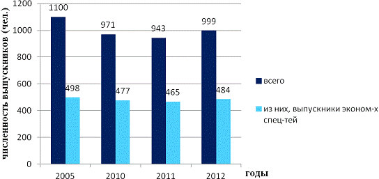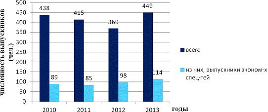 них, количество выпускников экономических специальностей - 484 человека [2]. На