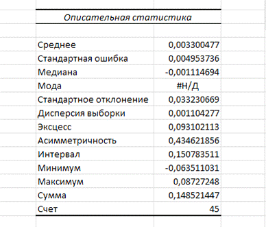 характеристики можно получить с помощью инструмента «Описательная статистика»