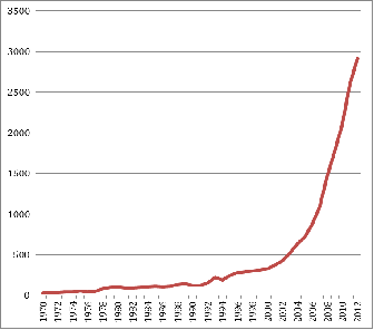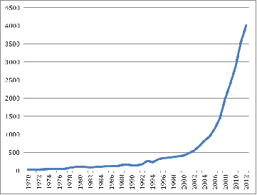 На протяжении 1970-2012 гг. внутренние инвестиции Китая выросли на 3989.7