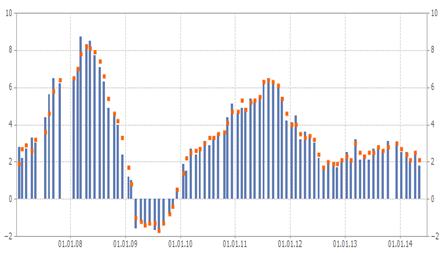 процессов в экономике упал до -1.1%. В 2010 году наблюдается повышение индекса