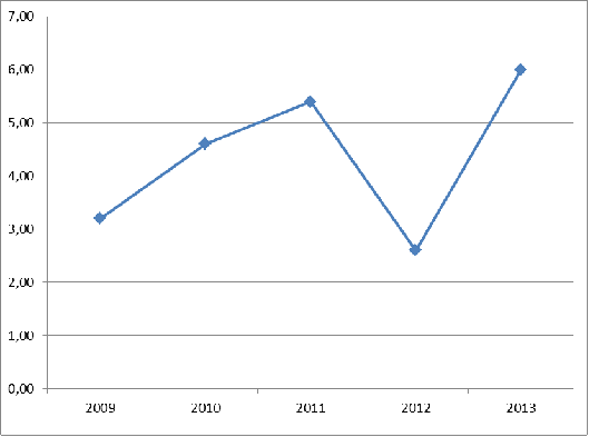 1.16 График динамики показателей инфляции Китая за 2009-2013 года