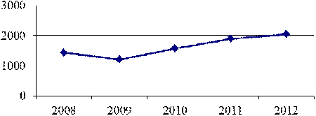 Импорт Китая занимает меньшую часть внешнеторгового оборота. На рисунке 2.5 отражен объем импорта с 2008 по 2012 гг..