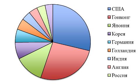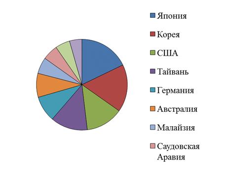 Экспорт товаров по странам-партнерам представлен в таблице 2.2 и на рисунке 2.4