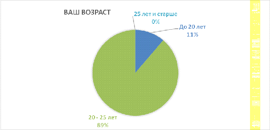 Основной возраст респондентов от 20-25 лет, что составляет 89% (63