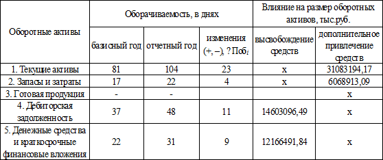 Расчет влияния оборачиваемости на размер оборотных активов