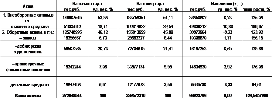 финансовое состояние предприятия путем изучения динамики и структуры активов,