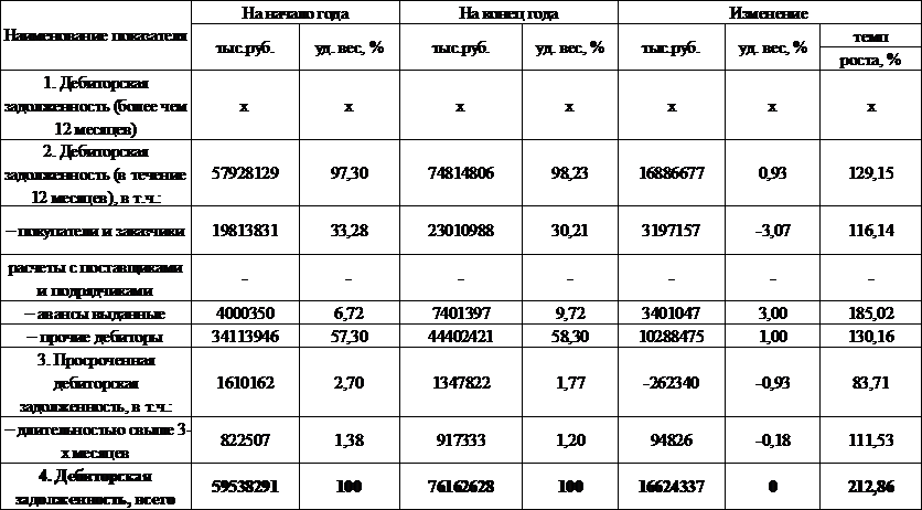 Анализ состояния и динамики дебиторской задолженности