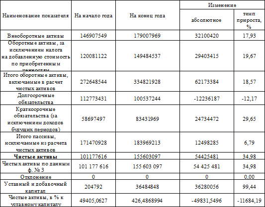 Анализ чистых активов предприятия