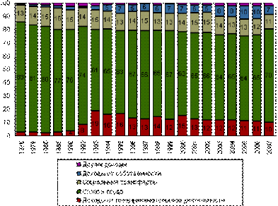 наибольший процент в 2005-2006 гг.