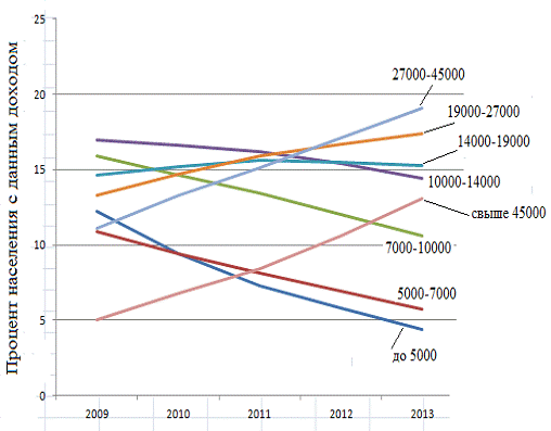 дохода "среднего класса", а также для наглядности изменение дохода