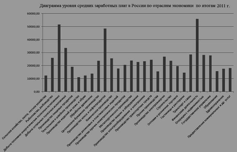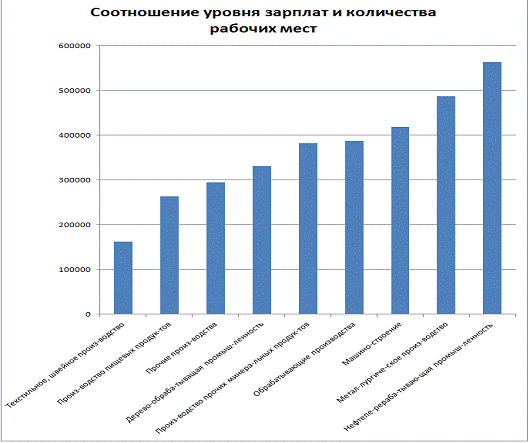регионам страны. Появились отрасли с высокими и низкими зарплатами, а также