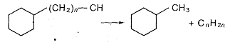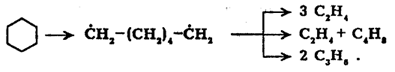 Дегидрирование незамещенных цикланов по цепному механизму не происходит, так как по сравнению с ним распад с образованием бирадикала протекает со значительно большей (на несколько порядков) скоростью. Алкилнафтены при термолизе ведут себя, как алканы: преимущественно распадаются боковые цепи по радикально-цепному механизму.