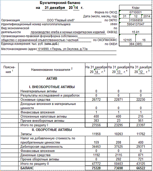 Коэффициенты ликвидности и финансовой устойчивости ООО «Первый хлеб» за 2014 г.