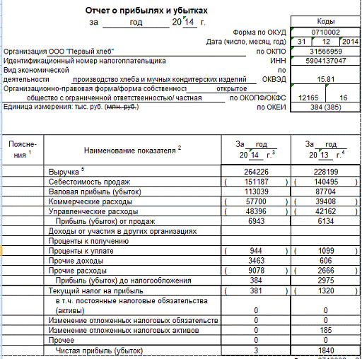 Проанализируем основные экономические показатели деятельности ООО «Первый хлеб» за 2013 - 2014 гг. на основании Отчета о финансовых результатах (Приложение 1).