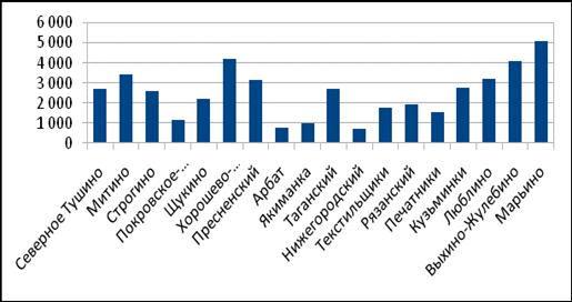 Выхино-Жулебино на юго-востоке), площадь жилого фонда составляет от 3 500 тыс.