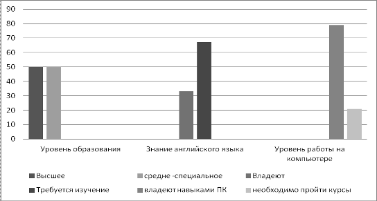 Рис.14. Опрос о уровне образования, знания английского и знания ПК у персонала в гостинице «Атлантик»