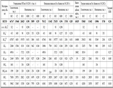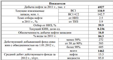 категории С2 - 31.7 млн. т), таблица 1.2. Добыча нефти за 2011 г. - 6927 тыс.