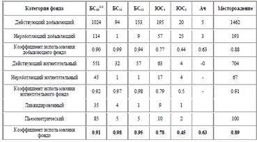 таблица 1.78. Наиболее высоким коэффициентом использования фонда (0.98)