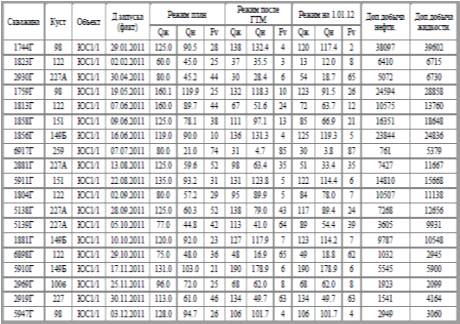 увеличении среднего дебита жидкости с 60.2 до 87.3т/сут. Средний дебит по нефти