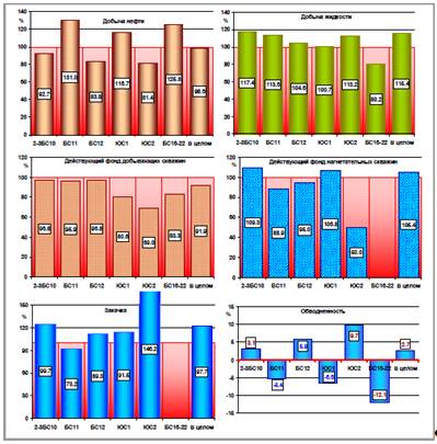г. - 1462 ед. (проект - 1591ед.), средние дебиты действующего фонда скважин по
