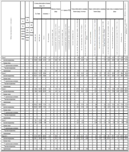 Как видно из таблицы (таблица 3.3), на всех участках отмечается снижение суточной добычи нефти. Основной причиной для участков №№1, 4 и 5 является снижение суточной добычи жидкости, для участков №2 и 3 - увеличение обводненности добываемой продукции.