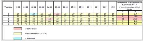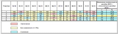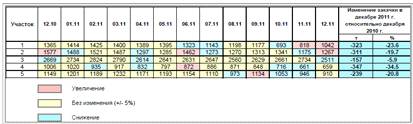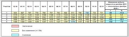Для более детального анализа рассматриваемый объект был разделен на 5 участков. Изменение основных показателей разработки по участкам за 2011 помесячно и год в целом представлено в таблицах (таблица 2.3-таблица 3.1) и на рисунках (рисунок 3.1-рисунок 3.10).