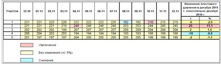 Таблица 3.9 Динамика пластового давления. Тевлинско-Русскинское месторождение. Объект БС11