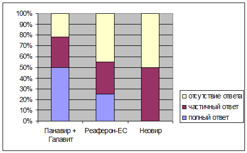 Рис. 2. Эффективность фармакотерапии больных ХВГС разными препаратами